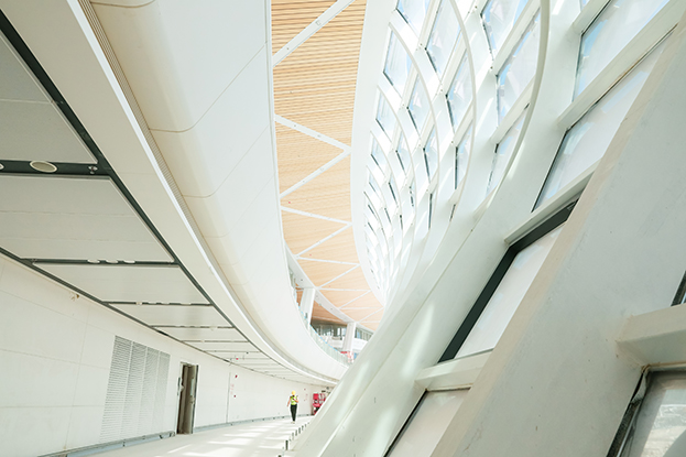 深圳機(jī)場(chǎng)衛(wèi)星廳建筑面積23萬(wàn)多平方米,由中央、東南、東北、西南和西北五個(gè)指廊組成,分為地上四層、地下一層。作為唯一參與精裝修的民營(yíng)企業(yè),中裝建設(shè)主要負(fù)責(zé)深圳機(jī)場(chǎng)衛(wèi)星廳2-3層西南、西北指廊,西雙子星廣場(chǎng)的精裝修工程。