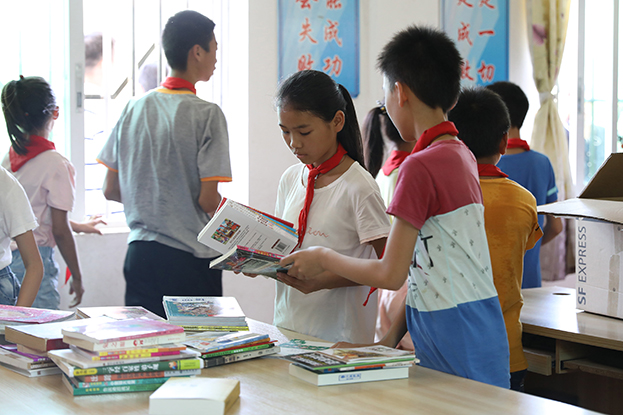 據(jù)了解,鷓洞學校現(xiàn)有學生104人,僅8位教師,課外資源匱乏。鷓洞學校的圖書室只有一兩個書柜,上面零散的擺放了一些舊書,如果沒有愛心企業(yè)捐贈,學校平時很少會有新的課外書補充。