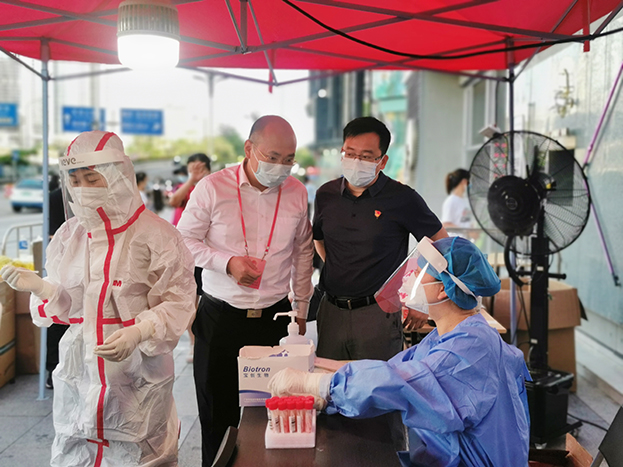 活動現(xiàn)場,中裝建設(shè)黨支部還組織黨員志愿者先鋒隊,堅定投身疫情防控第一線和最前沿,積極開展核酸檢測、秩序維護(hù)等工作。